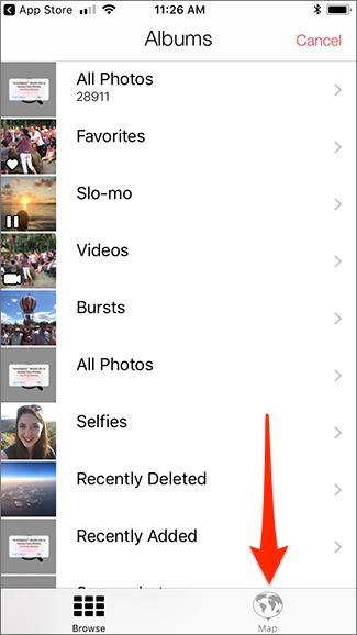 Вы также можете сортировать и просматривать фотографии по местоположению. Коснитесь значка карты внизу главного экрана приложения.