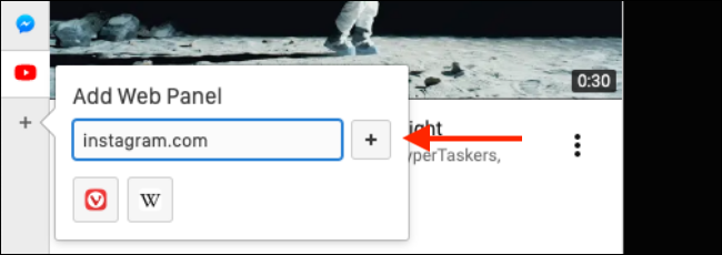 Чтобы использовать ее, после загрузки и открытия Vivaldi щелкните знак плюса (+) в нижней части боковой панели, а затем введите URL-адрес Instagram. Оттуда нажмите знак плюса (+) рядом с адресной строкой.