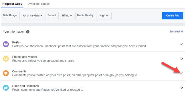 Вы увидите уведомление «Создается копия вашей информации». Вы также можете получить электронное письмо с подтверждением. Facebook уведомит вас, когда ваша информация будет готова к загрузке.